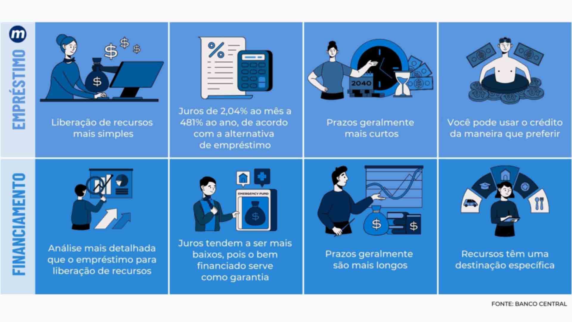 O empréstimo consiste na liberação de recursos mais simples, juros mais altos em operações sem garantia. Os prazos, geralmente, são mais curtos e o consumidor usa o crédito como desejar.