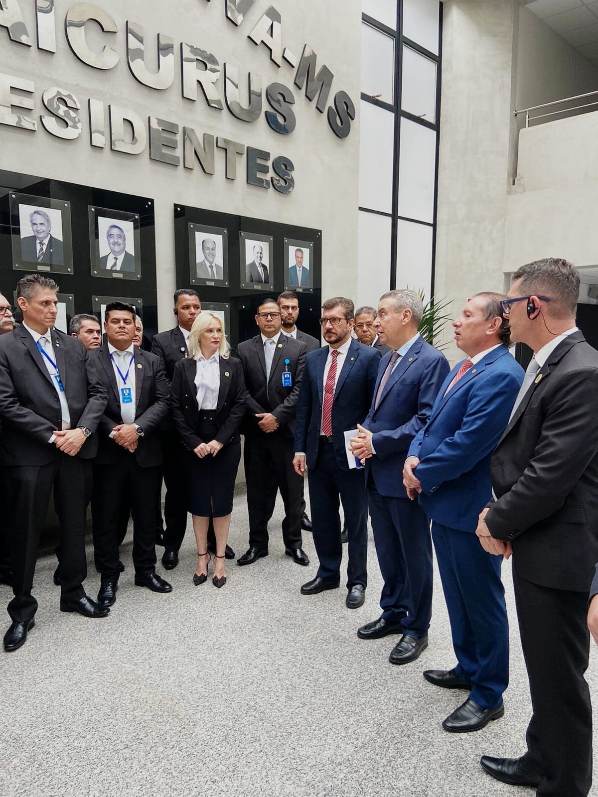 “Recebemos três equipamentos de raio-x, em que instalaremos em três pontos de controle de entrada, começando aqui na entrada principal. Isso é a segurança interna funcionando para que possamos preservar a vida de quem trabalha e quem visita. Também passamos a uniformizar os agentes corretamente, com paletó, gravata e camisa padronizados. Temos 1.100 funcionários e o setor da Segurança dá esse resguardo a todos, também aos deputados e a quem vem à Casa, fazendo funcionar essa nova ALEMS”, relatou o 1º secretário da ALEMS, Paulo Corrêa, sobre as ações para ampliar a Segurança.