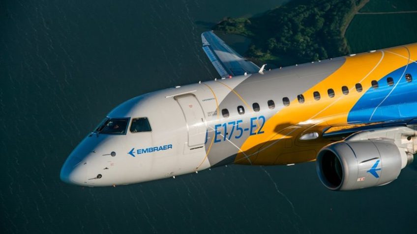 O E175-E2 é a menor aeronave da nova geração da família E2 da Embraer, que já conta com os modelos E190-E2 e E195-E2 em operação.