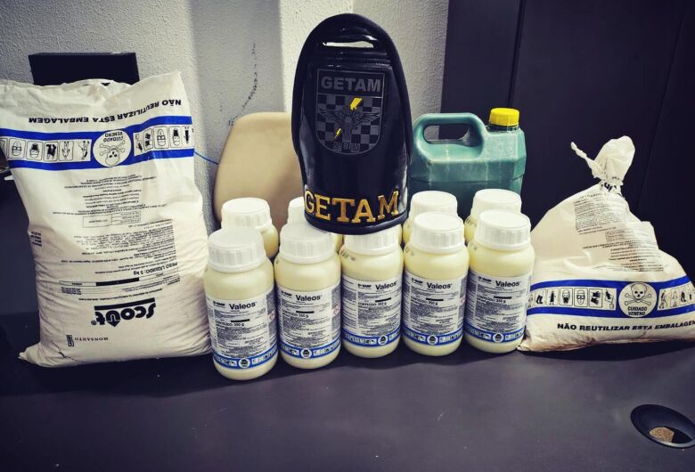 Nesta quinta-feira (27), por volta das 16h40, uma guarnição do Getam (Grupamento Especial Tático de Motos) do 2º BPM apreenderam alguns produtos agrotóxicos furtados sendo vendidos por um indivíduo na Avenida Capitão Olinto Mancine, no cruzamento com a Rua Alba Candida.
