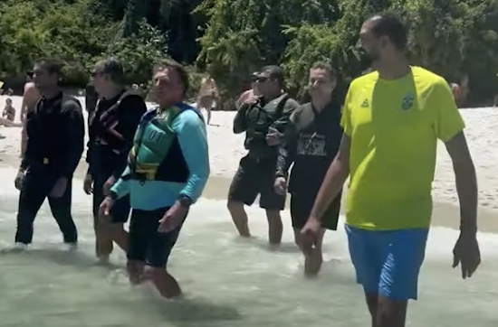 Em vídeos, os aliados aparecem em passeio pelo mar com Bolsonaro. Na praia, tiraram fotos com apoiadores.