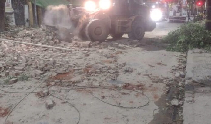 Em vídeo que circula pelas redes sociais, feito logo depois do desabamento, é possível ver o imóvel destruído e os entulhos sobre a calçada e a avenida.