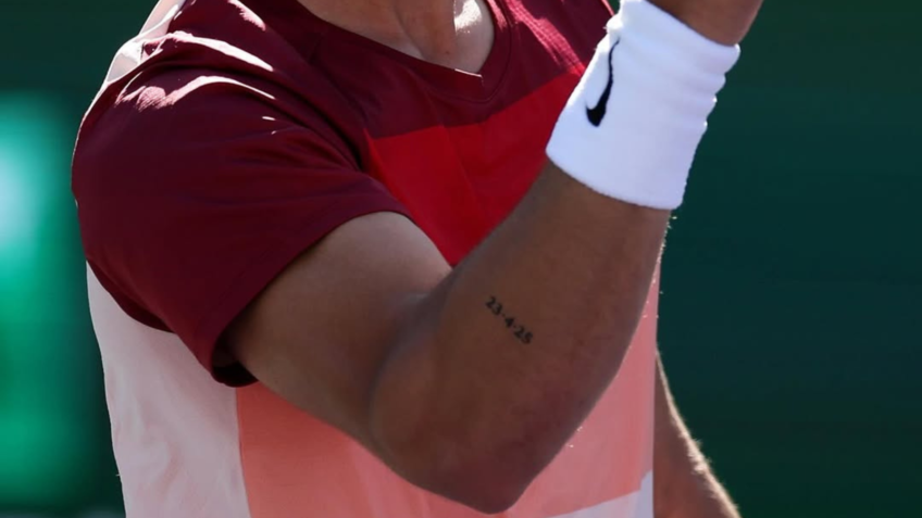 Tenista espanhol apareceu com data de estreia da produção da Netflix no braço, durante torneio em Indian Wells