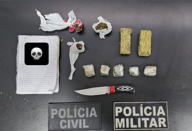 Com autorização para entrada no quarto, os policiais localizaram no armário dele uma porção de maconha totalizando 38 gramas. Em seguida, foi realizada busca em outro quarto, onde reside o outro suspeito, sendo encontrados um caderno com registros de dívidas relacionadas ao tráfico e aproximadamente 246 gramas de maconha, já fracionadas em porções maiores.