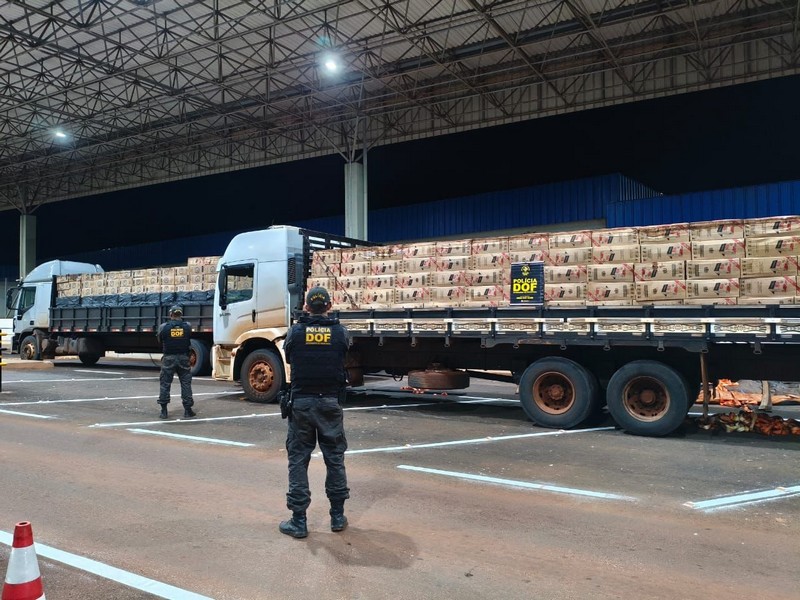 Em busca nos veículos foi constatado que ambos estavam carregados com cigarros contrabandeados do Paraguai. Durante checagem aos agregados dos caminhões, os policiais constataram que os dois haviam sido furtados na cidade de Londrina (PR), em novembro do ano passado. Diligências foram feitas na região, mas nenhum suspeito foi localizado.