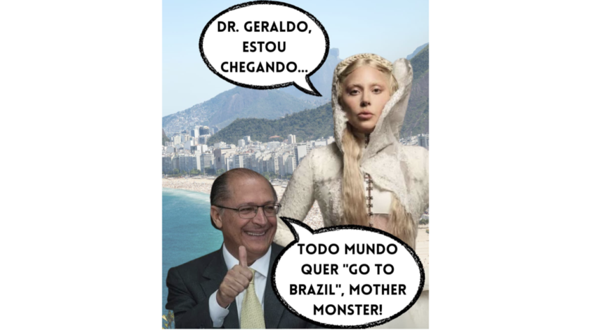 Alckmin compartilhou uma imagem em que a cantora, que fará um show gratuito na praia de Copacabana, no Rio, em 3 de maio, diz: “Dr. Geraldo, estou chegando”. Ele responde: “Todo mundo quer ‘go to Brazil’, Mother Monster [apelido da artista]“.