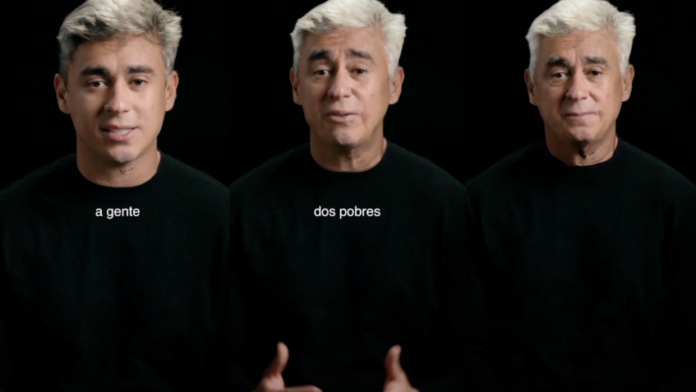 Nikolas utilizou inteligência artificial para envelhecer no final da gravação, em alusão aos aposentados lesados ao longo do tempo.