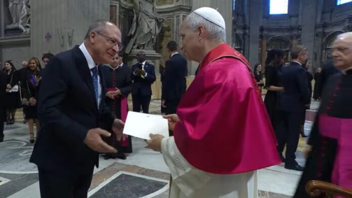 O vice-presidente Geraldo Alckmin (PSB) disse neste domingo (18.mai.2025) que teve uma conversa em “portunhol” com o papa Leão 14. O representante do presidente Luiz Inácio Lula da Silva (PT) e do governo brasileiro entregou pessoalmente um convite para que o pontífice participe da COP30, em Belém.