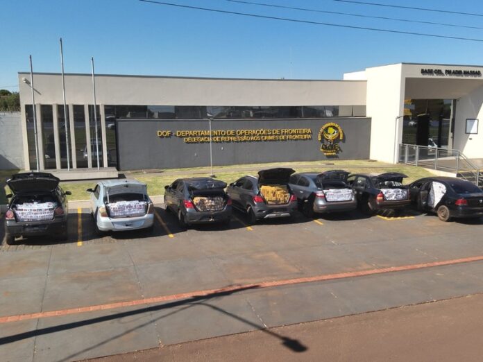 Policiais militares do DOF (Departamento de Operações de Fronteira) apreenderam na manhã desta segunda-feira (7), no Assentamento Itamarati, em Ponta Porã, sete veículos carregados com mais de 2,6 toneladas de maconha e quase 10 mil pacotes de cigarros contrabandeados do Paraguai.