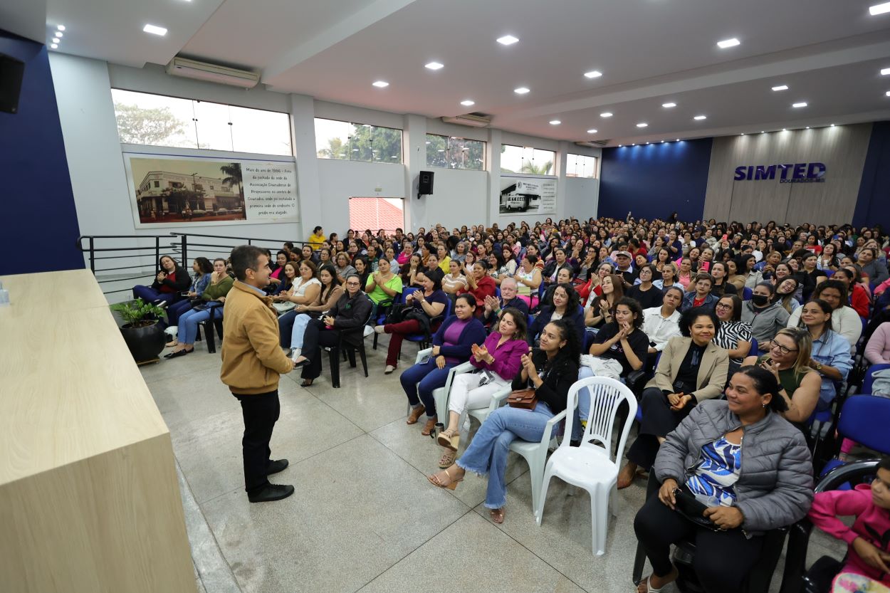 Funcionários administrativos dos Centros de Educação Infantil (CEIMs) participam nesta quinta-feira (17) de uma formação continuada promovida pela Prefeitura de Dourados, por meio da Secretaria Municipal de Educação. O evento acontece no auditório do Sindicato Municipal dos Trabalhadores em Educação (Simted), em dois turnos, das 7h30 às 11h e das 13h30 às 17h, reunindo aproximadamente 400 servidores da rede. A capacitação continuada dos servidores atende determinação do prefeito Marçal Filho de melhoria constante na qualidade do ensino ofertado pela Rede Municipal.