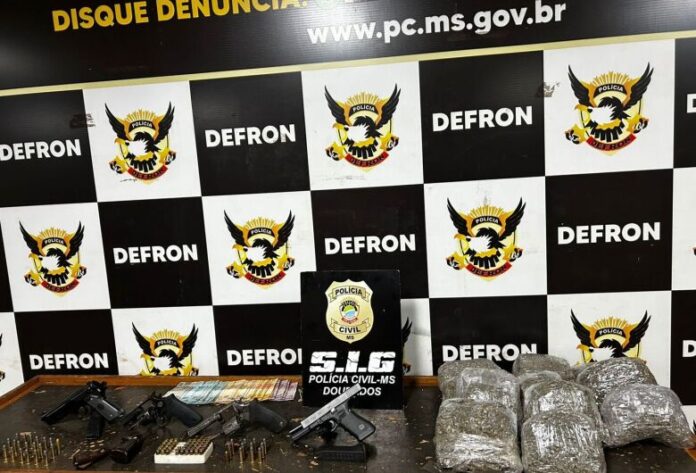 Segundo as primeiras informações apuradas pelo Dourados News, a ação teve início com o cumprimento de mandados de busca e apreensão. Durante as diligências, os policiais apreenderam uma pistola, um revólver, munições, certa quantia em dinheiro e porções de skunk.