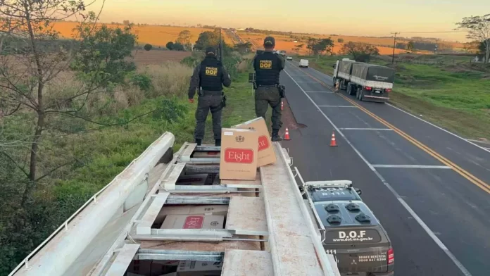 Logo, foram feitas buscas pelo veículo, e os policiais encontraram 25 mil pacotes de cigarros de origem estrangeira no semirreboque da carreta. A carga está avaliada em R$ 1,4 milhão e foi encaminhada para a Receita Federal, em Mundo Novo.
