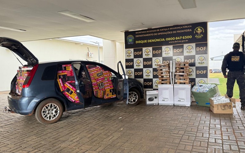 A abordagem ocorreu na BR-267. Durante vistoria no automóvel, os policiais encontraram 52,7 quilos de maconha, 200 pacotes de cigarros paraguaios, 195 pacotes de essência de narguilé e diversos itens de descaminho, como óculos, baterias para celular e aspiradores de pó.