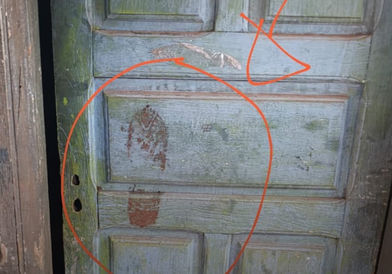 Em seguida, com chutes, ele tentou violar a entrada da casa.