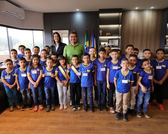 Um grupo de alunos da Escola Municipal Prefeito Luiz Antonio Álvares Gonçalves, da região do bairro Novo Horizonte, promoveu visita didática na manhã desta terça-feira (19) na Prefeitura. O prefeito Marçal Filho conversou com as crianças e explicou de forma dinâmica sobre alguns processos diários que acontecem no Executivo douradense.