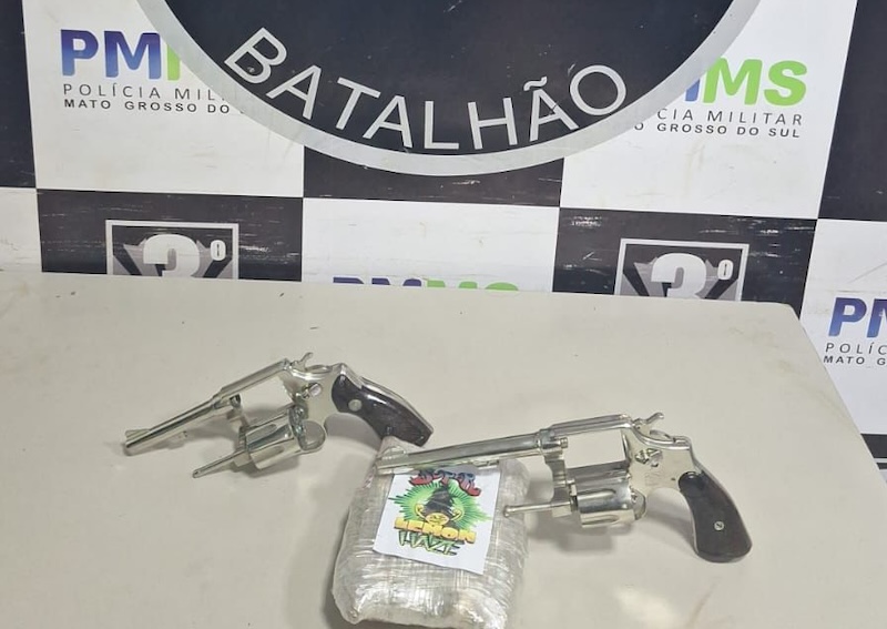 Uma equipe do 3º Batalhão da PM (Polícia Militar) de Dourados apreendeu, por volta das 19h20 desta terça-feira (19), duas armas de fogo e drogas durante abordagem na rotatória do trevo de Laguna Carapã, o entroncamento da MS-379 com BR-463, na saída para Ponta Porã.
