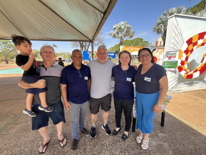 Dirigentes do Simted, como a secretária-geral Caroline Matos, a diretora de formação sindical Rosemary Borin e o secretário administrativo Alexandre Soares Gonçalves, se revezam na banca montada na praça para a coleta dessas assinaturas.