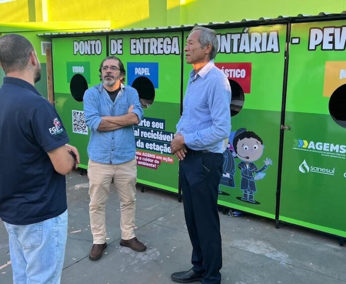 Durante visita à Escola Estadual Fausta Garcia Bueno, no bairro Coophasul, em Campo Grande, o vereador conheceu o modelo já em funcionamento. A estrutura do ponto de coleta é disponibilizada à comunidade escolar e também aos moradores, possibilitando o descarte correto de papel, plástico, metal e vidro.