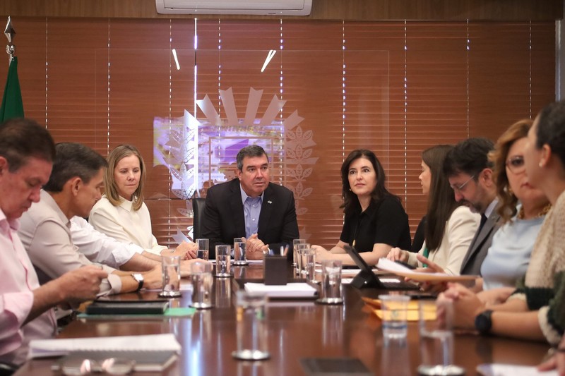 O governador Eduardo Riedel apresentou à ministra Simone Tebet (Planejamento e Orçamento), na manhã desta quarta-feira (24), o trabalho realizado pelo Governo do Estado e conduzido pelas equipes da EPE (Escritório de Parcerias Estratégicas) e SES (Secretaria de Estado de Saúde).