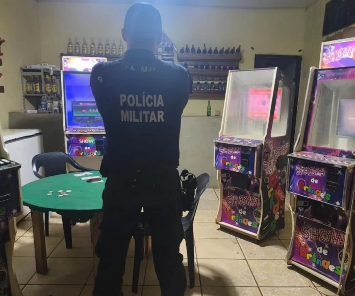 Durante vistoria no local, os militares encontraram os caça-níqueis e identificaram que o bar era utilizado para apostas ilegais e jogos de azar. Os policiais flagraram, durante a operação, um cliente, de 56 anos, jogando em uma das quatro máquinas presentes no estabelecimento.