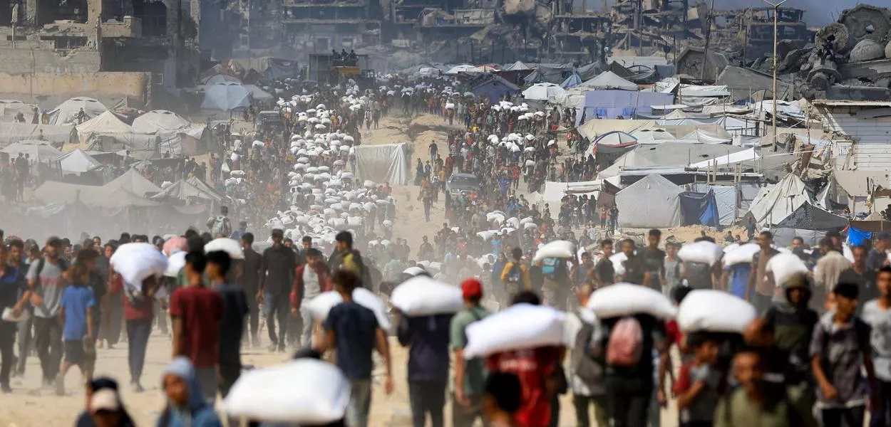 Grandes áreas de Gaza foram reduzidas a um deserto devido aos bombardeios israelenses ao longo de dois anos, que mataram cerca de 68.000 pessoas, de acordo com as autoridades de saúde de Gaza.