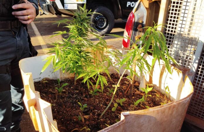 Na ação específica desta segunda-feira, os policiais encontraram diversos pés da planta em fase de crescimento.