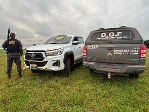 Policiais militares do DOF (Departamento de Operações de Fronteira) recuperaram, nesta quinta-feira (13), na MS-386, em Ponta Porã, uma caminhonete Toyota Hilux roubada no Estado do Paraná. Na ação, dois paraguaios, de 35 e 37 anos, foram presos.