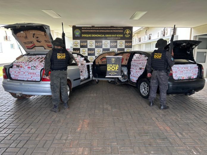 Policiais militares do DOF (Departamento de Operações de Fronteira) apreenderam, neste sábado (7), em Rio Brilhante, um GM Astra e um VW Polo carregados com 1.750 pacotes de cigarros contrabandeados do Paraguai. Na ação, ninguém foi preso.