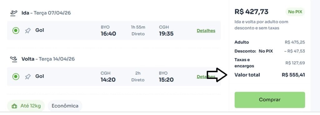 Na promoção da Gol tem voo direto de Campo Grande para o Aeroporto de Guarulhos, em São Paulo, pelo valor de R$ 587. Também tem promoção de Corumbá para Campinas nos voos diretos da Azul que serão retomados em março de 2026. As passagens aéreas de ida e volta que estavam sendo vendidas por R$ 731 agora custam R$ 591.