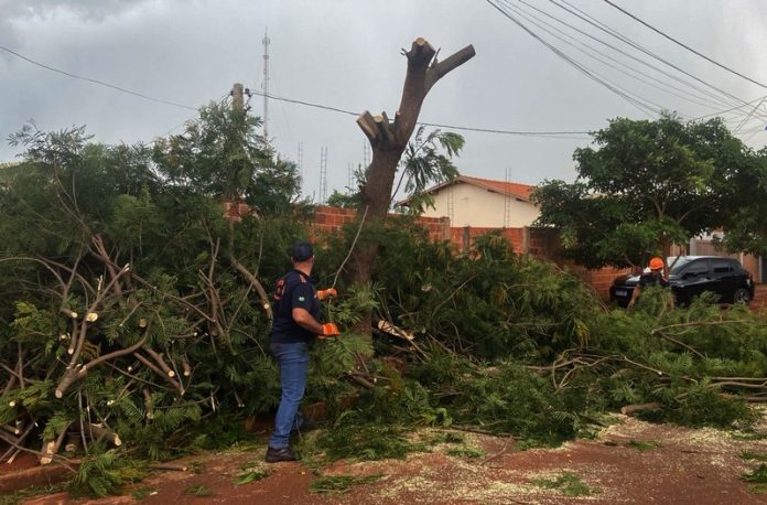 A Prefeitura de Dourados, em ação conjunta com a Defesa Civil e secretarias municipais, mobilizou equipes desde a tarde de sexta-feira para minimizar os efeitos do temporal que atingiu o município e avançou pela madrugada deste sábado (12). A chuva intensa, acompanhada de ventos fortes, provocou a queda de 31 árvores, danos em marquises, telhado de uma residência e veículos atingidos por galhos, mas não houve registro de feridos nem de alagamentos.