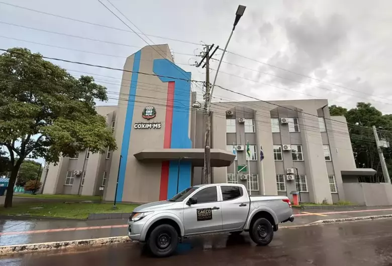 Policiais militares do Gaeco (Grupo de Atuação Especial e Repressão ao Crime Organizado) cumprem mandados na sede da prefeitura de Coxim, município localizado na região Norte do Estado. A ação ocorre nesta quinta-feira (12/2).