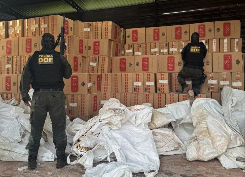 Policiais militares do Departamento de Operações de Fronteira (DOF) apreenderam, na manhã de sábado (21), aproximadamente 125 mil pacotes de cigarros contrabandeados do Paraguai em um galpão localizado na zona rural de Mundo Novo. A ação resultou em prejuízo estimado em mais de R$ 6 milhões ao crime organizado.