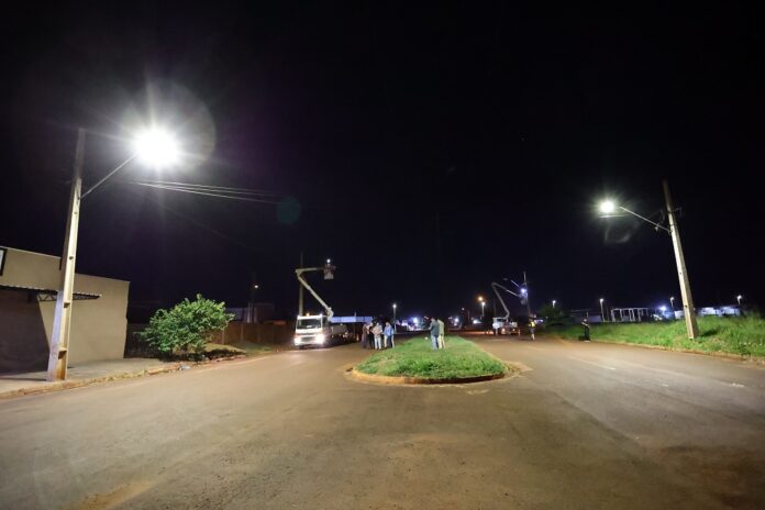 A Prefeitura de Dourados iniciou na noite desta terça-feira (3) a modernização completa da rede de iluminação pública do município. O contrato de pouco mais de R$ 47 milhões vai garantir a substituição de luminárias e a troca de lâmpadas de vapor, a maioria de mercúrio, por lâmpadas de LED que garantem maior claridade, economia de energia e durabilidade. Neste primeiro momento a empresa começa a operar com 3 equipes treinadas para esse tipo de serviço, mas a partir do dia 15 de março serão 8 equipes trabalhando em toda cidade.
