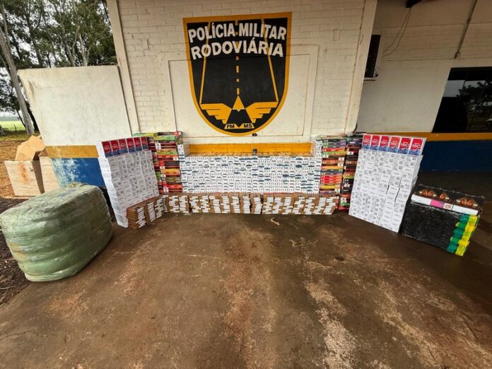 Durante vistoria no interior do automóvel, os policiais encontraram diversas mercadorias de origem estrangeira, entre elas 400 pacotes de cigarros, 325 pacotes de essência para narguilé, 200 aparelhos celulares, 200 TV Box, cigarros eletrônicos e outros produtos.