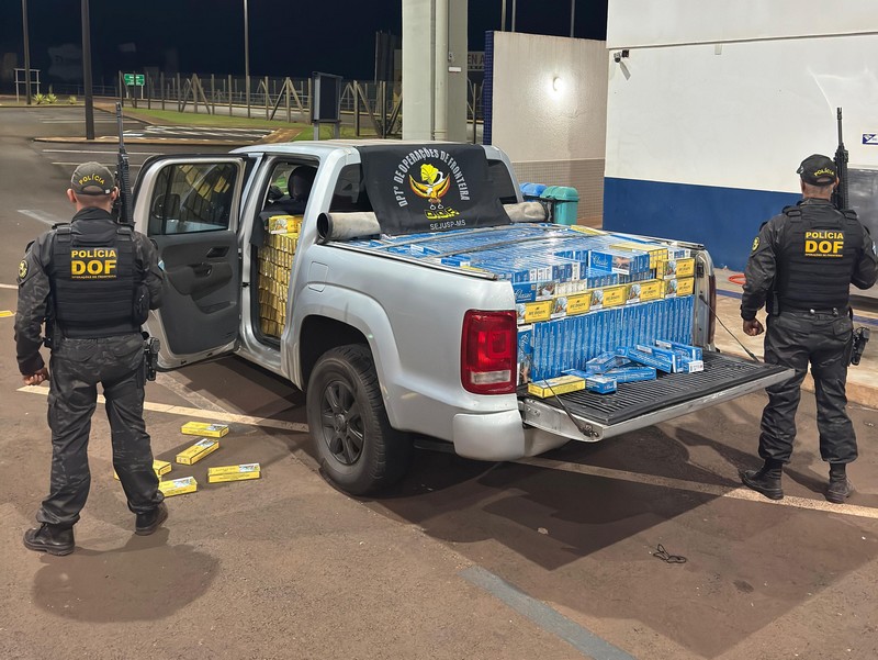 Policiais militares do DOF (Departamento de Operações de Fronteira) apreenderam, nesta sexta-feira (10), em Iguatemi, 1.500 pacotes de cigarros de origem estrangeira que eram transportados em uma caminhonete VW Amarok. Na ação, dois homens, de 58 e 44 anos, foram presos em flagrante.
