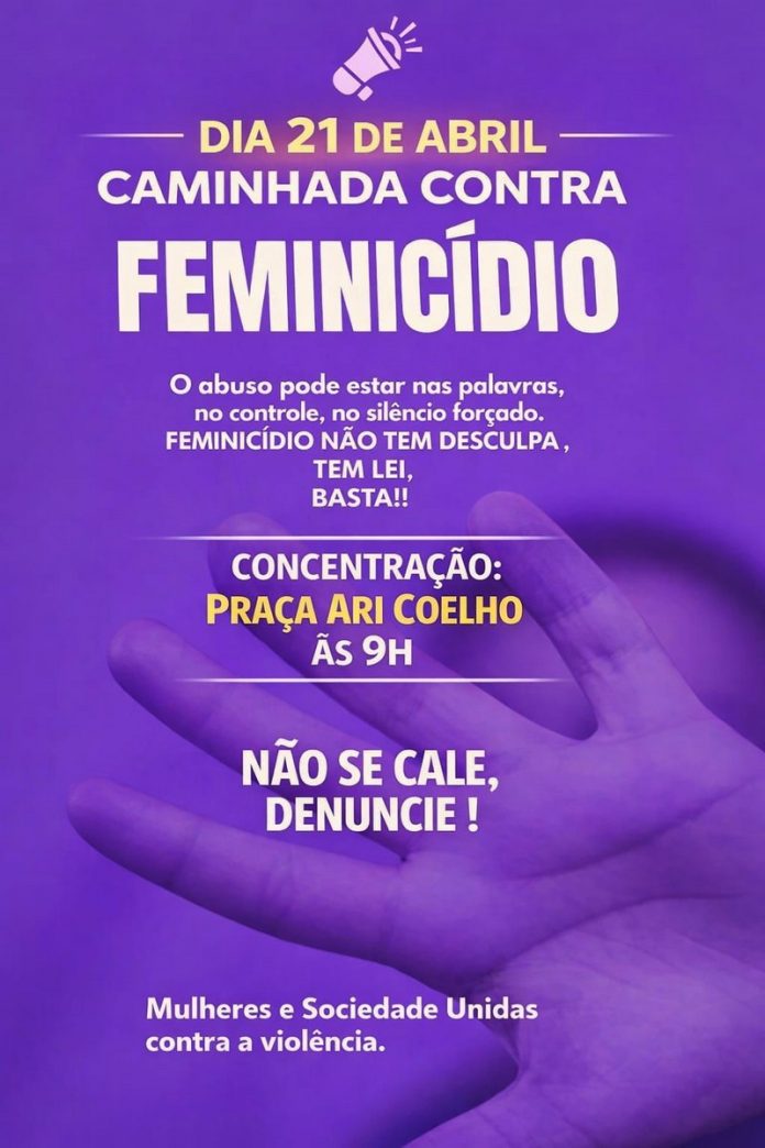 A caminhada desta terça-feira integra um conjunto de ações que buscam não apenas denunciar a violência, mas também estimular a conscientização e o apoio entre mulheres. “O enfrentamento ao feminicídio depende de ações conjuntas do poder público, da sociedade e, principalmente, da coragem de romper o silêncio. Denuncie!”, finaliza o deputado.